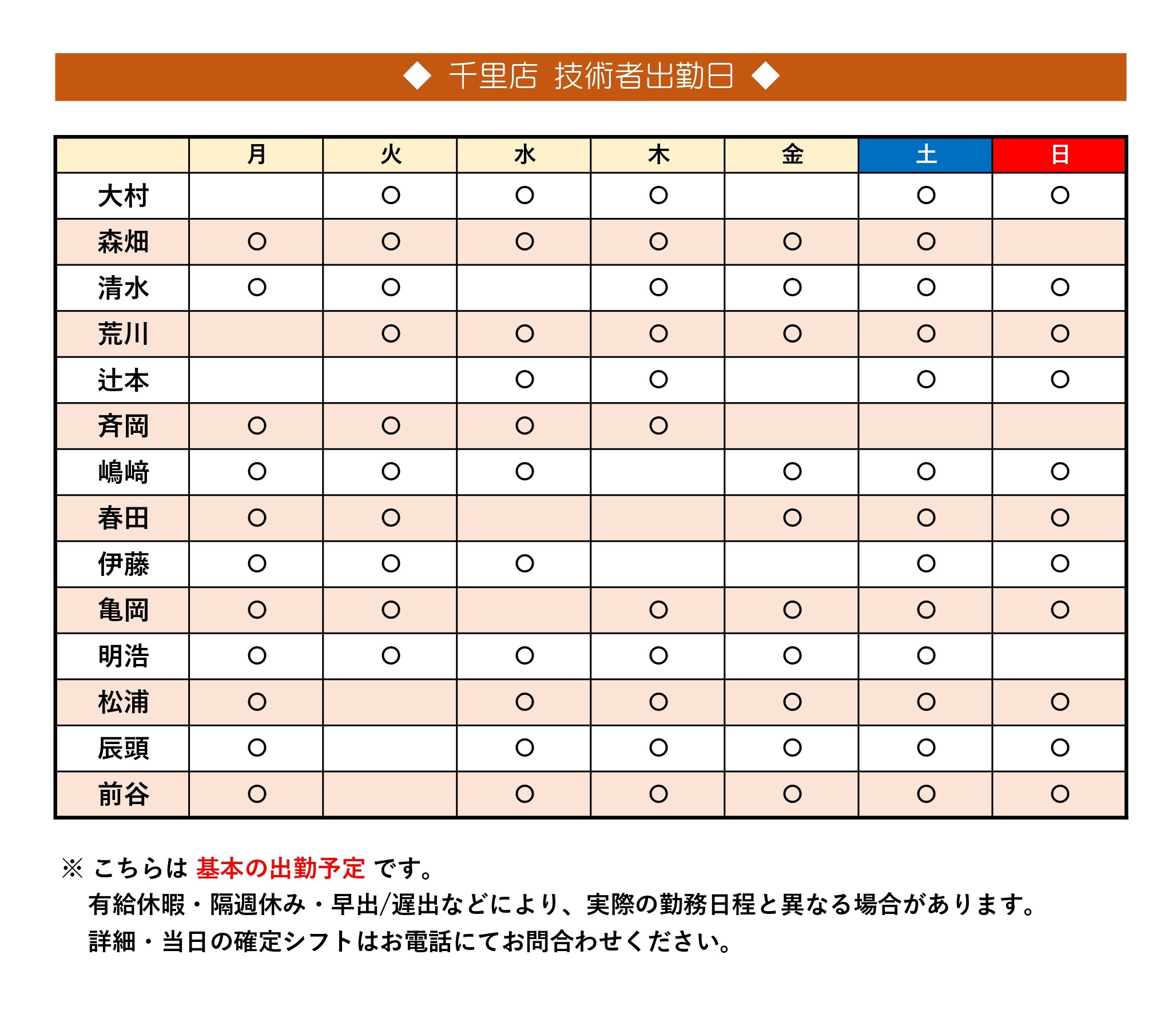【千里店】技術者出勤日