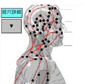 例えば、パソコン画面上の人体図のうち首の横にある経穴(