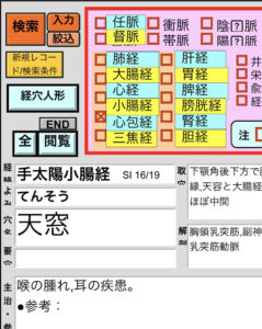 そのうち首や肩から上にある経穴を絞り込み検索すると10穴もあ